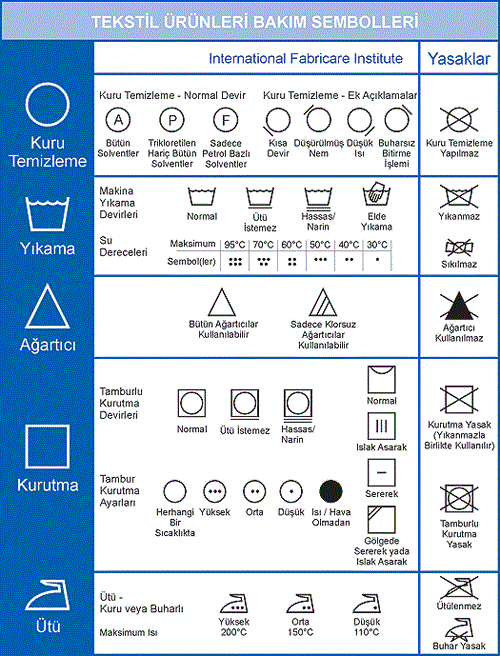 Kuru Temizleme Sembol ve İşaretler